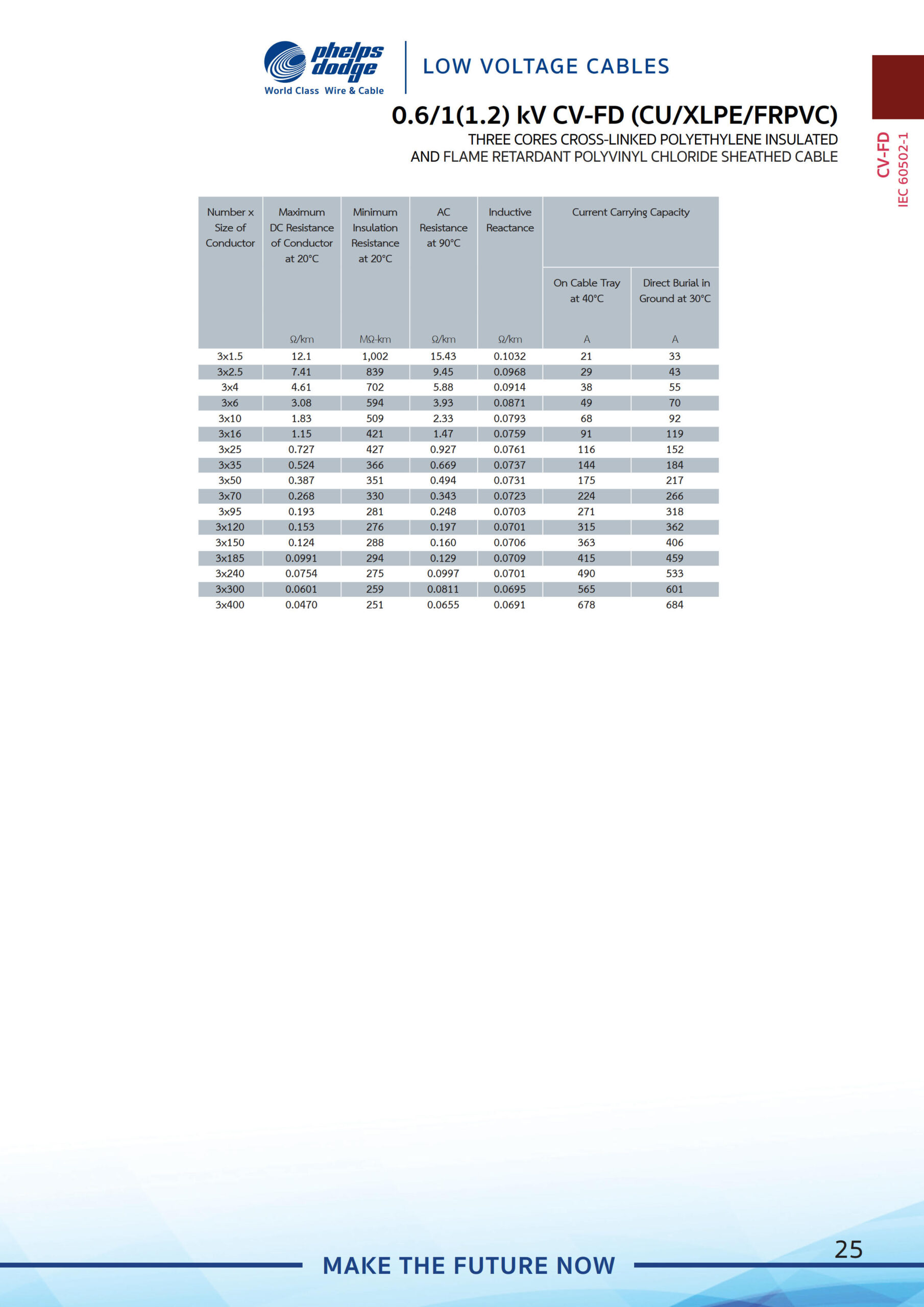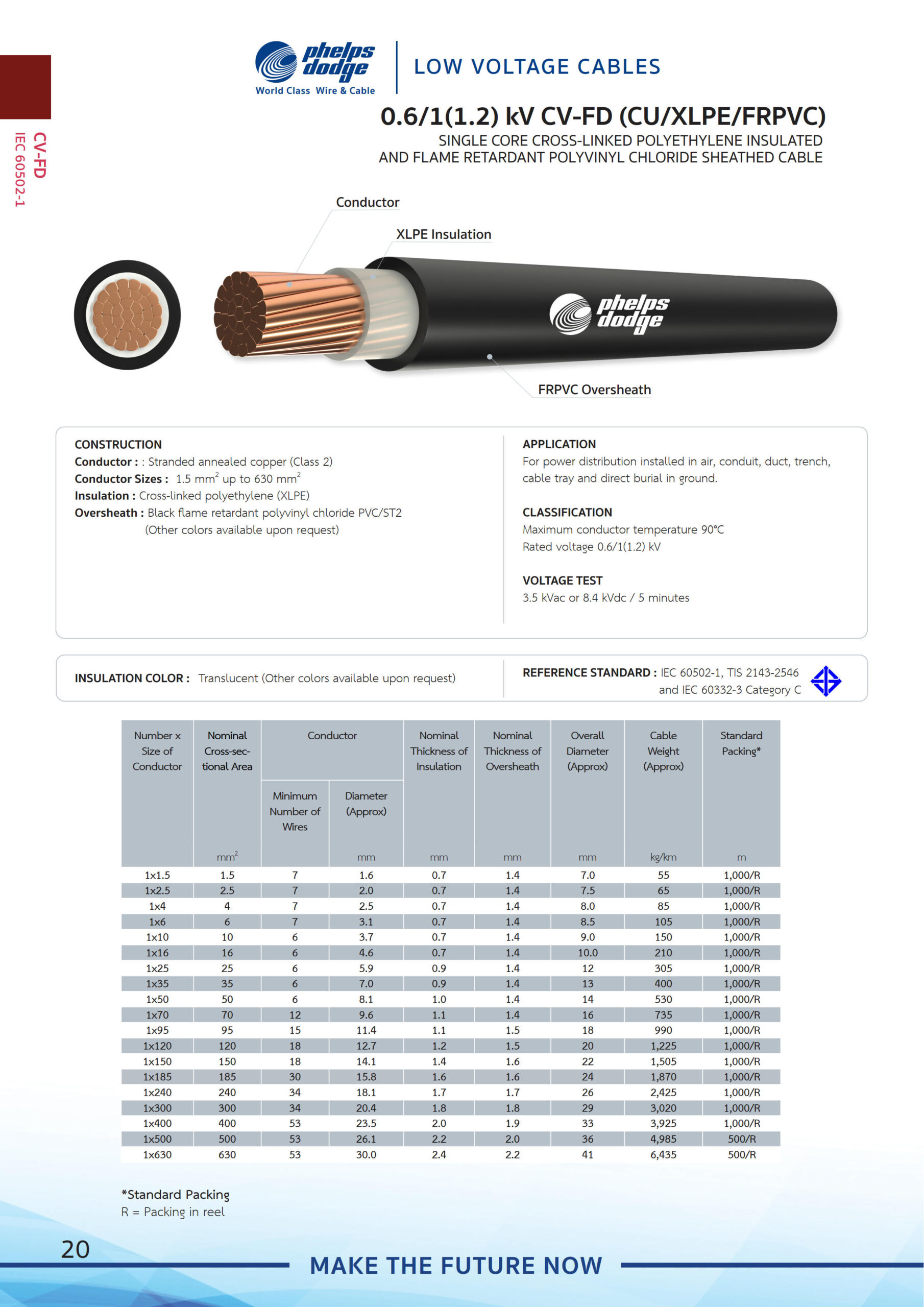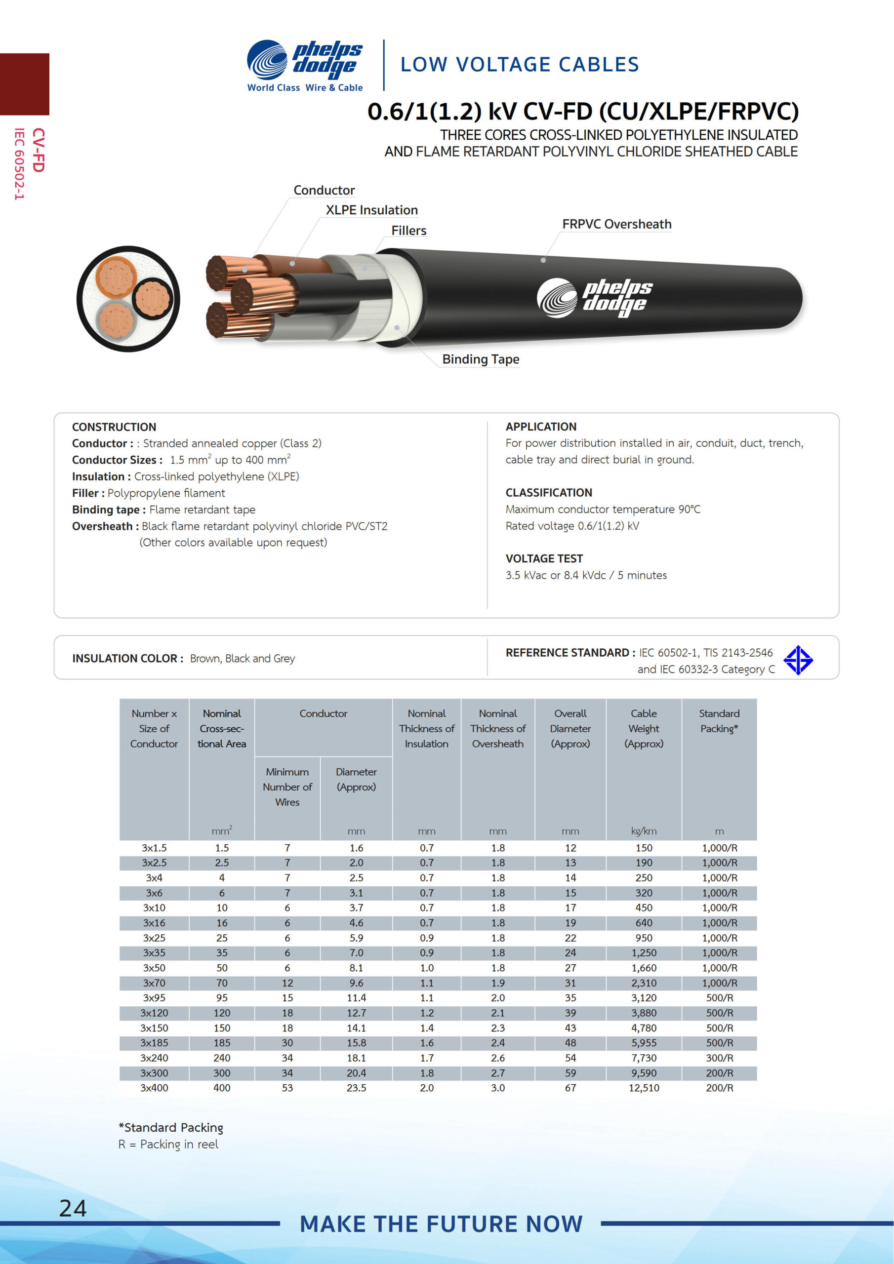 มาตรฐาน : | IEC 60502-1 , IEC 60332-3-24 Category C |