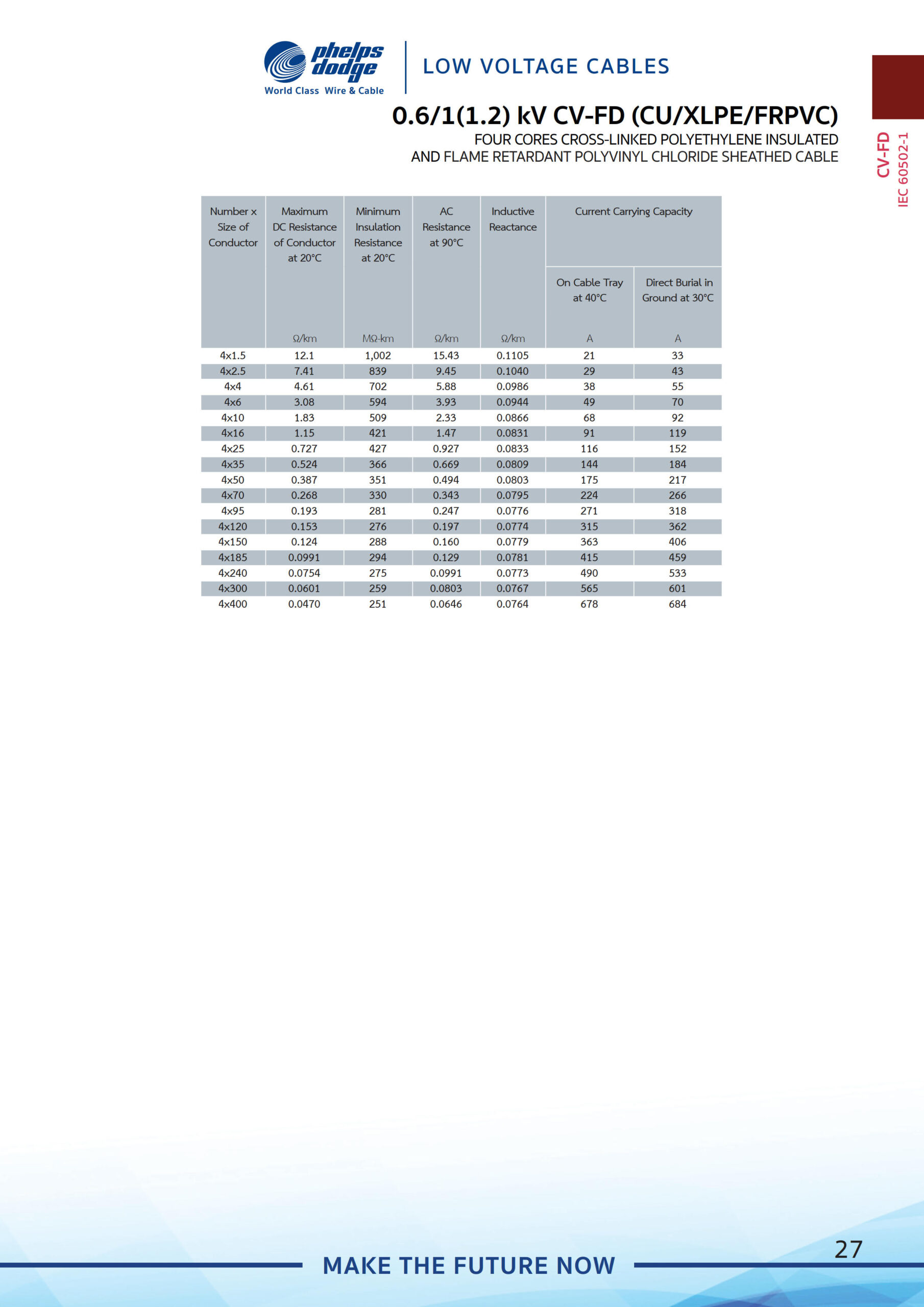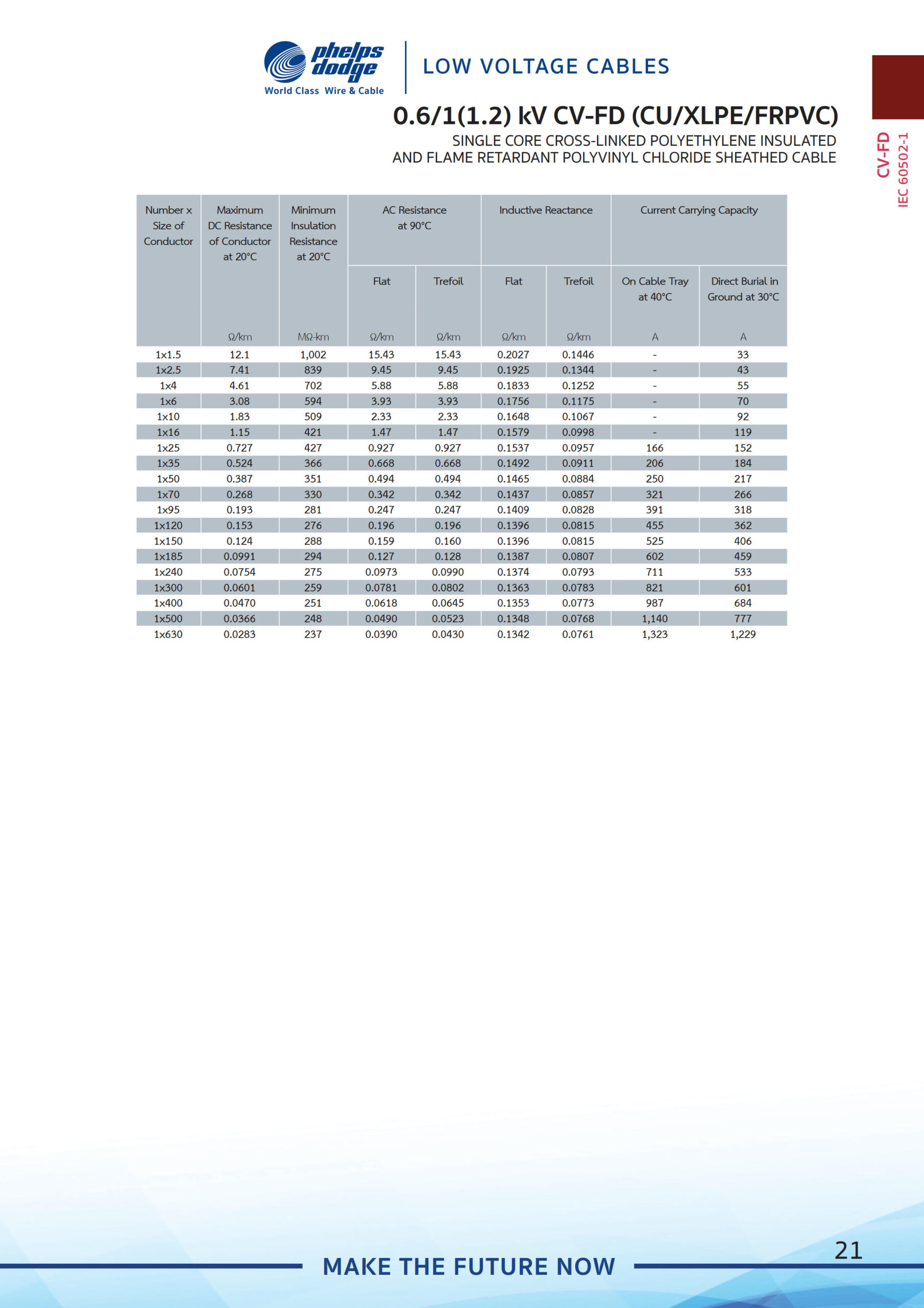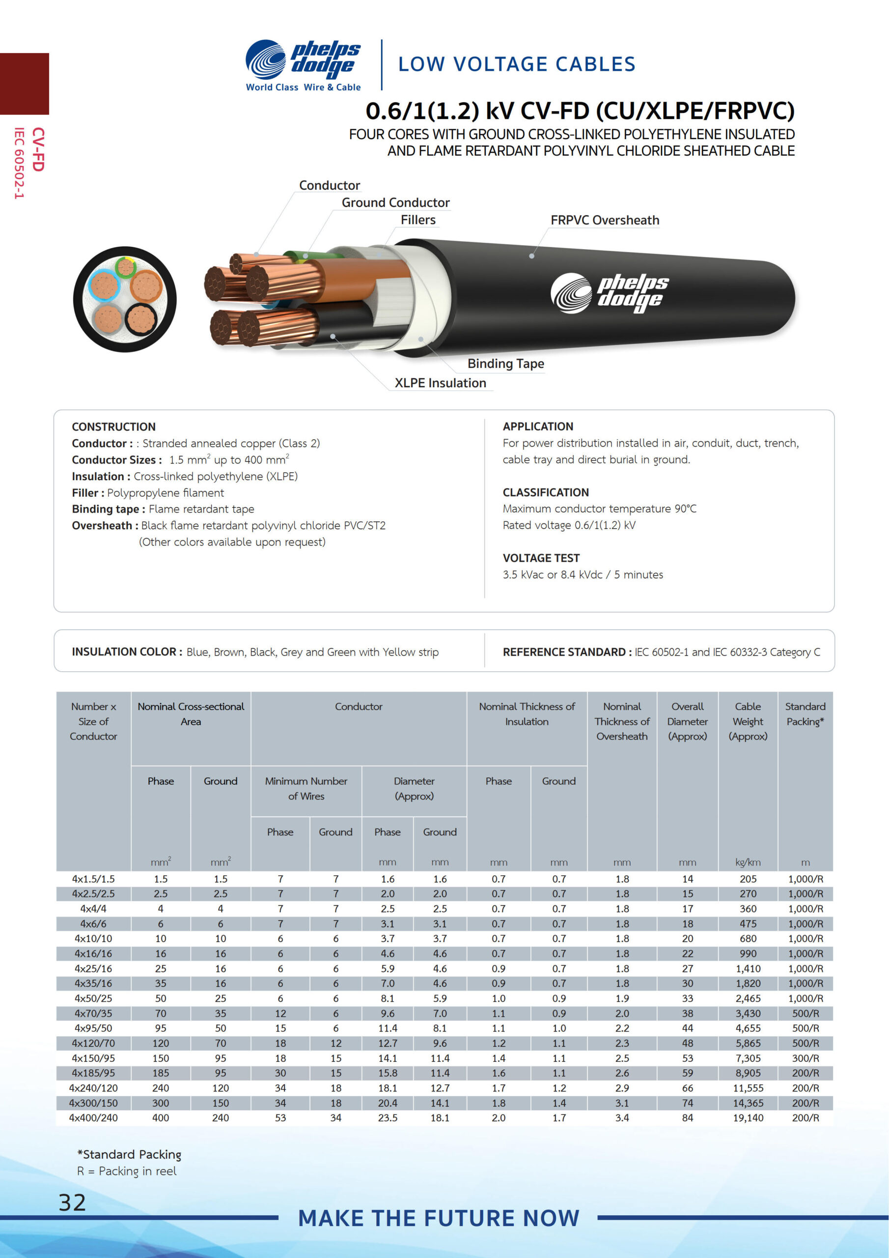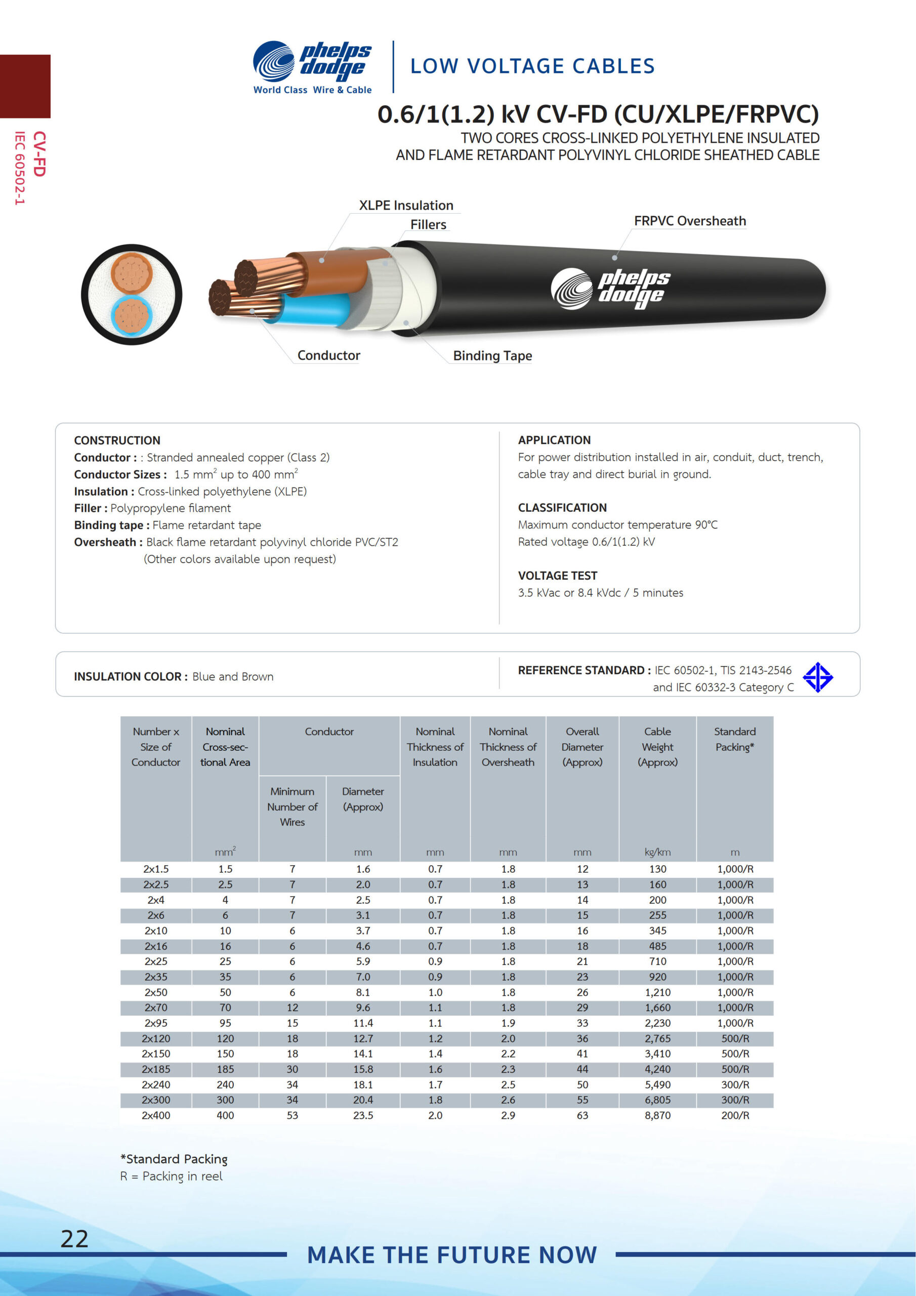 มาตรฐาน : | IEC 60502-1 , IEC 60332-3-24 Category C |